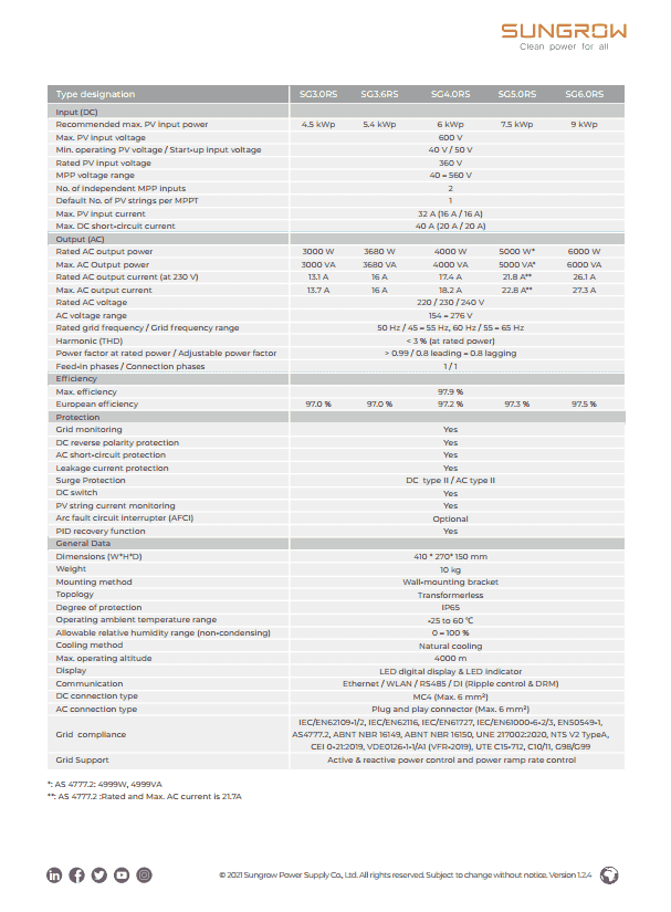Inverter Hòa Lưới Sofar Solar 70000TL-HV